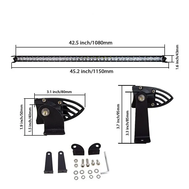 210W Super slim LED pracovné svetlo s dĺžkou 101 cm je navrhnuté pre intenzívne osvetlenie v tých najnáročnejších podmienkach. Vďaka diaľkovému svetlu s vysokou svietivosťou poskytuje koncentrovaný a jasný svetelný lúč, ideálny na osvetlenie vzdialených objektov či pracovného priestoru.