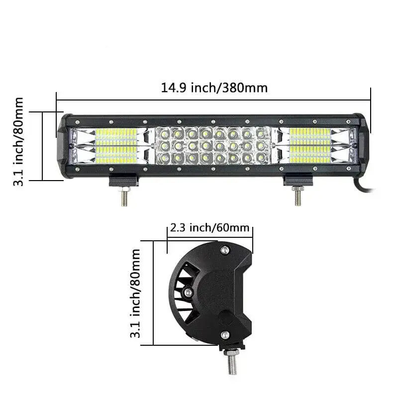 216W LED trojradová rampa 7D s dĺžkou 38 cm je výkonné svetlo určené pre offroad jazdu, pracovné nasadenie a technické vozidlá. Vďaka kombinovanému svetelnému režimu (COMBO – diaľkové + rozptylové svetlo) s rozptylom 30° a 60° poskytuje široký aj hlboký svetelný lúč.
